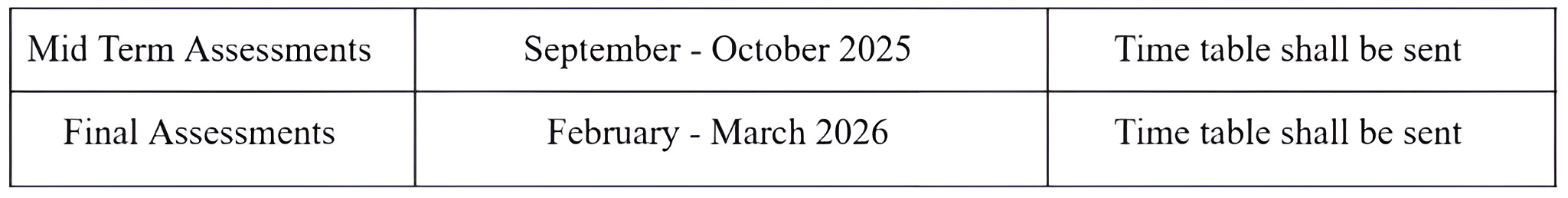 - Targeted timeline for Syllabus completion for any Term Exams: Two weeks before the exam starts.